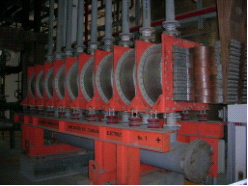 復(fù)極式氯酸鹽電解槽型號 FG-II40 FG-II60 FG-II80 FG-II120 FG-II160 電解面積 40M2 60M2 80M2 120M2 160M2 陽極材料 MMO/TA1 MMO/TA1 MMO/TA1 MMO/TA1 MMO/TA1 陰極材料 防鼓泡陰極 防鼓泡陰極 防鼓泡陰極 防鼓泡陰極 防鼓泡陰極 設(shè)計電流密度 2000-2500A/M2 2000-2500A/M2 2000-2500A/M2 2000-2500A/M2 2000-2500A/M2 電極距離 2.5mm~3mm 2.5mm~3mm 2.5mm~3mm 2.5mm~3mm 2.5mm~3mm 陽極涂層 五元納米涂層 五元納米涂層 五元納米涂層 五元納米涂層 五元納米涂層 陽極壽命 >6年 >6年 >6年 >6年 >6年 氧含量 <3% <3% <3% <3% <3% 電流效率 >93% >93% >93% >93% >93% 殼體材料 碳鋼、鈦 碳鋼、鈦 碳鋼、鈦 碳鋼、鈦 碳鋼、鈦 導(dǎo)電板 三層復(fù)合導(dǎo)電材料 三層復(fù)合導(dǎo)電材料 三層復(fù)合導(dǎo)電材料 三層復(fù)合導(dǎo)電材料 三層復(fù)合導(dǎo)電材料 氯酸鹽產(chǎn)量 360噸/年 540噸/年 720噸/年 1100噸/年 1450噸/年 直流電耗 <4900kw/噸 <4900kw/噸 <4900kw/噸 <4900kw/噸 <4900kw/噸